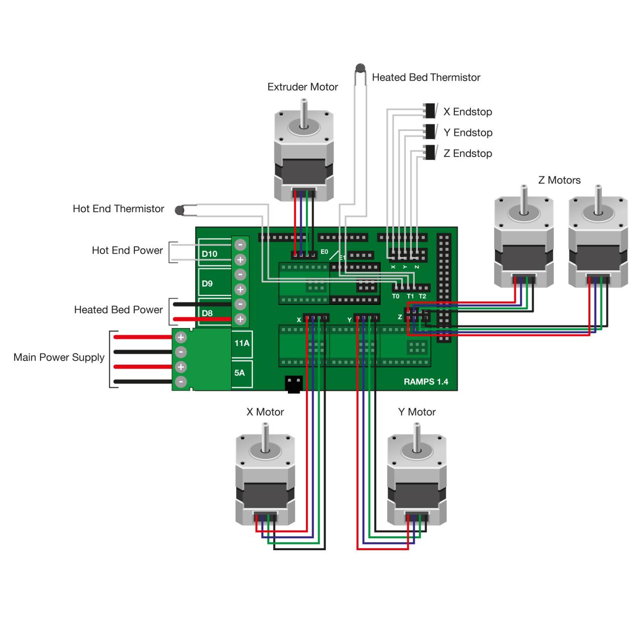 Riêng về các cảm biến nhiệt, bàn đốt nóng, dây nốt nóng đầu phun, quạt … chúng ta sẽ cắm vào sau.
